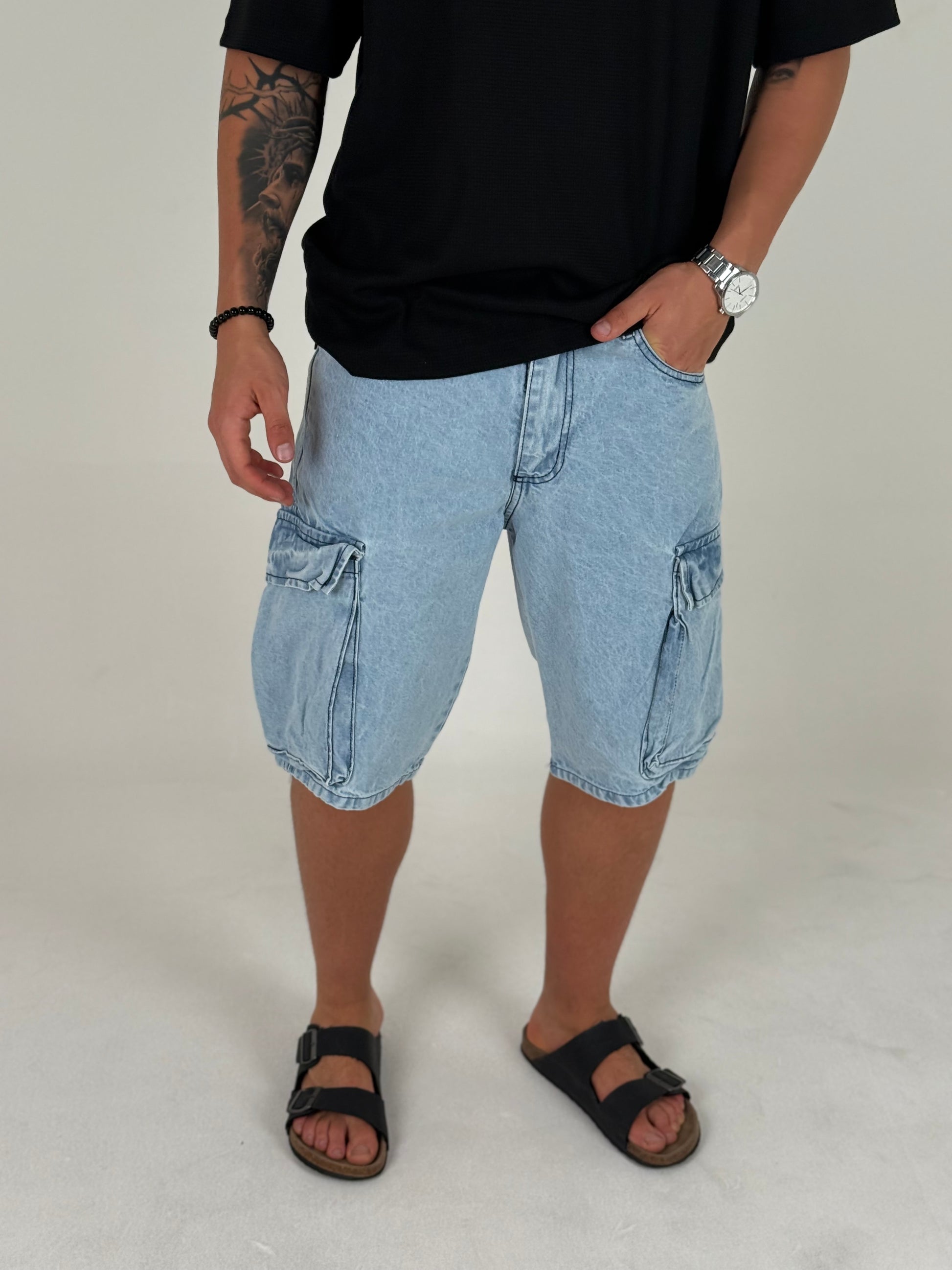La bermuda cargo celeste es una opción moderna y funcional para quienes buscan comodidad con un estilo urbano fresco. Su diseño práctico incluye bolsillos amplios que aportan utilidad y carácter, mientras que el color celeste refuerza una estética veraniega y ligera. El corte relajado la convierte en una prenda ideal para el día a día, manteniendo un look actual en cualquier ocasión casual.