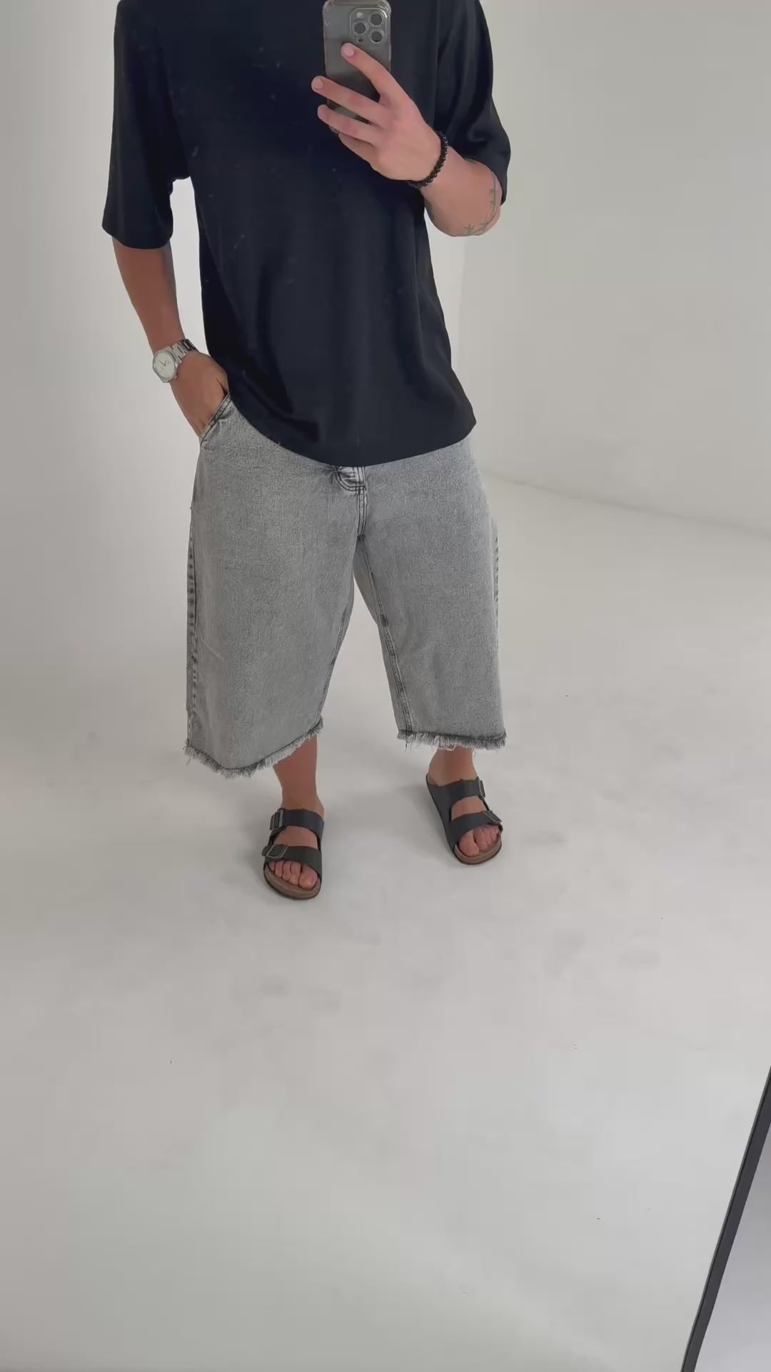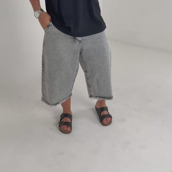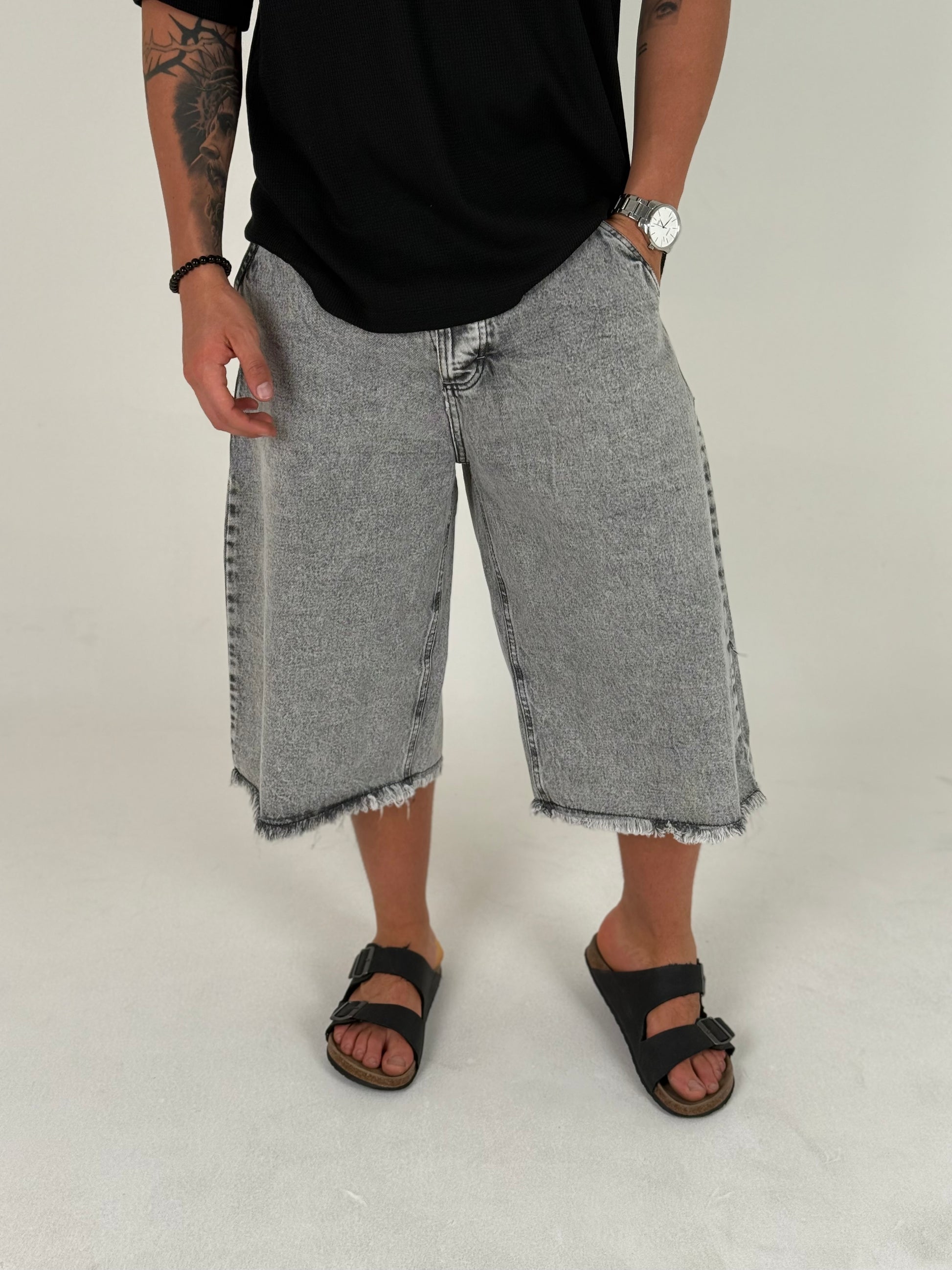 La bermuda gris tres cuartos es una prenda versátil, cómoda y con un estilo urbano marcado. Su largo extendido ofrece una estética moderna y relajada, ideal para quienes buscan un look distinto sin perder comodidad. El diseño ubicado en el bolsillo derecho agrega un detalle visual que destaca y aporta personalidad al conjunto.