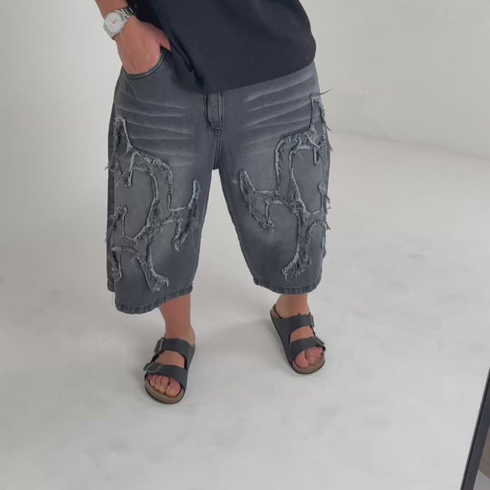 La bermuda super baggy gris es una prenda urbana y cómoda, ideal para quienes buscan un look relajado con detalles que marcan estilo. Su calce extra amplio ofrece libertad de movimiento y una estética street moderna, mientras que el diseño bordado en el frente, con forma de estrella abstracta, suma un toque distintivo que resalta sobre el tono gris. Perfecta para outfits frescos y con personalidad.